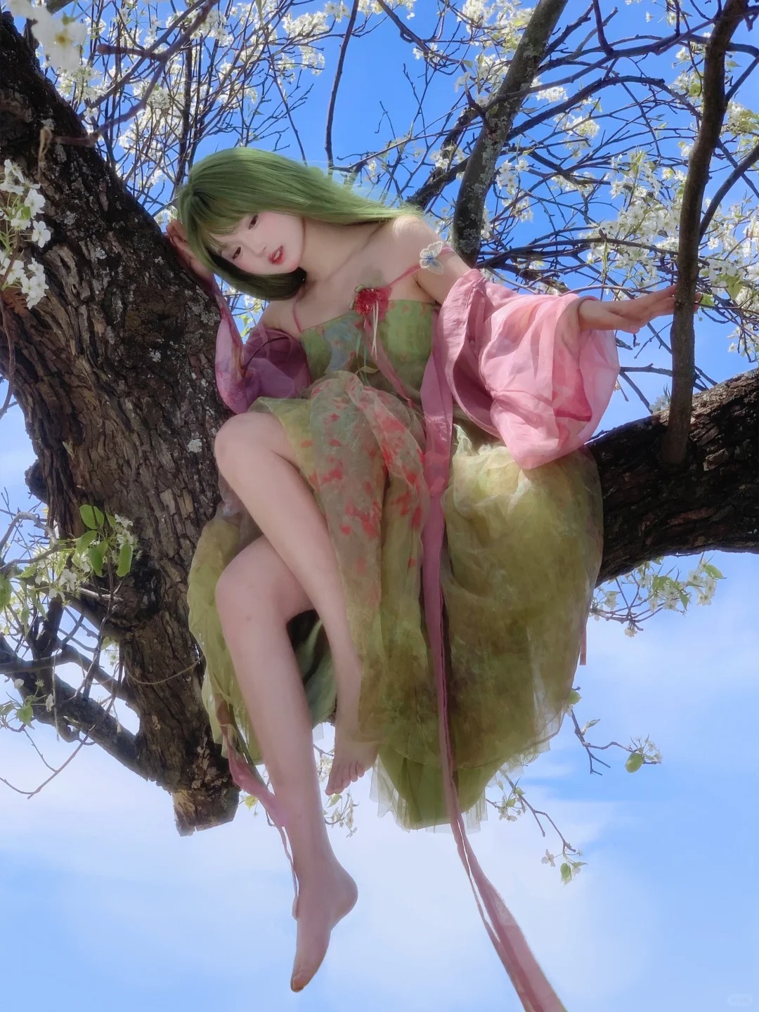 他是树上枝,你是树上仙。 春光留不住,洒满在人间。