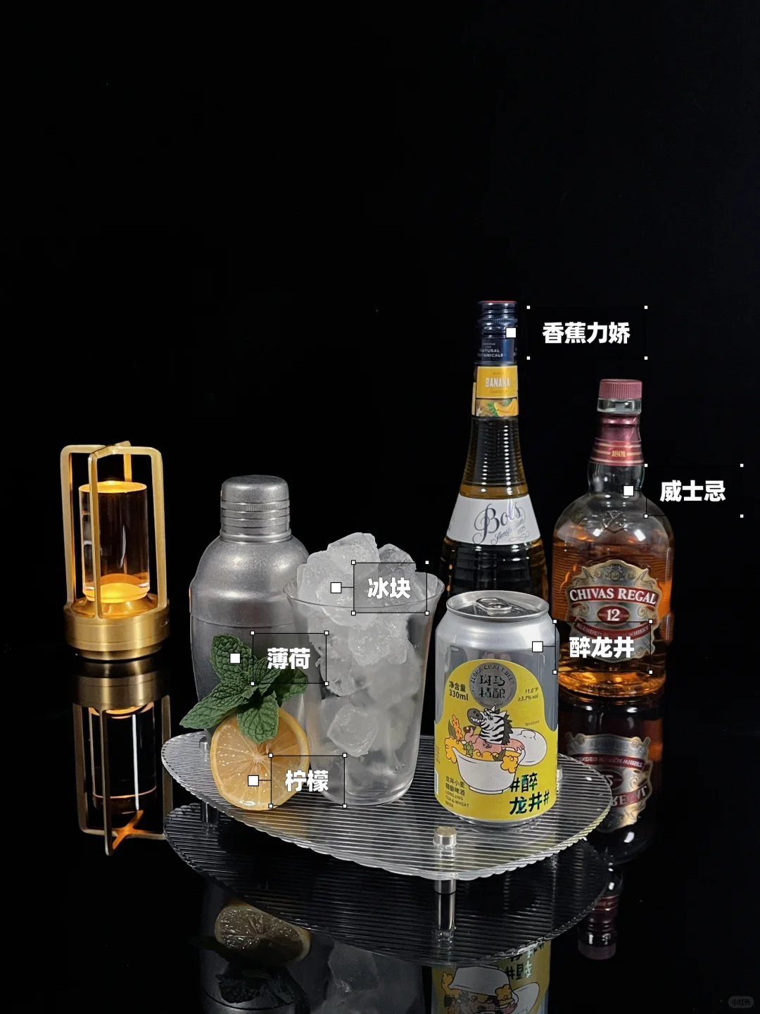 夜幕降临,繁星点点,醉意渐浓,延绵醇香久不息 细品慢尝久不散,回味悠长醉龙延。 鸡尾酒的浓烈与龙井啤酒的清新茶香交织,“醉龙井”精酿作为基地,散发出若有似无的淡雅茶香,随后而来是的兰花、香草等草本清香,龙井茶香更是激发了小麦和酵母带来的细腻脂香,以茶入🍷酒,尽享迷人鲜香。底部的香蕉力娇与威士忌调和酒体 仿佛舞动的龙鳞片洒落,唤醒你的味蕾,轻抿一口香气溢,滋味交融醇且烈,层次丰富回味长,酒香四溢醉龙延,享受醇香夜色中。整体口感茶香浓郁,气泡口感清新,口感清爽平衡,快试试! 配方Formula 威士忌----------------------------40ml 香蕉力娇-------------------------25ml 醉龙井----------------------------90ml(补满量) 柠檬汁-----------------------------15ml 薄荷叶-----------------------------2片 -