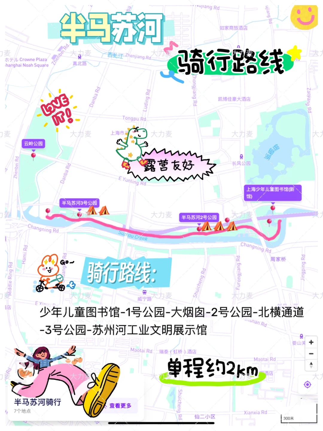 ✅游玩体验丰富,除了露营骑行,也可搭配少年儿童图书馆、苏州河游船,玩上一整天!