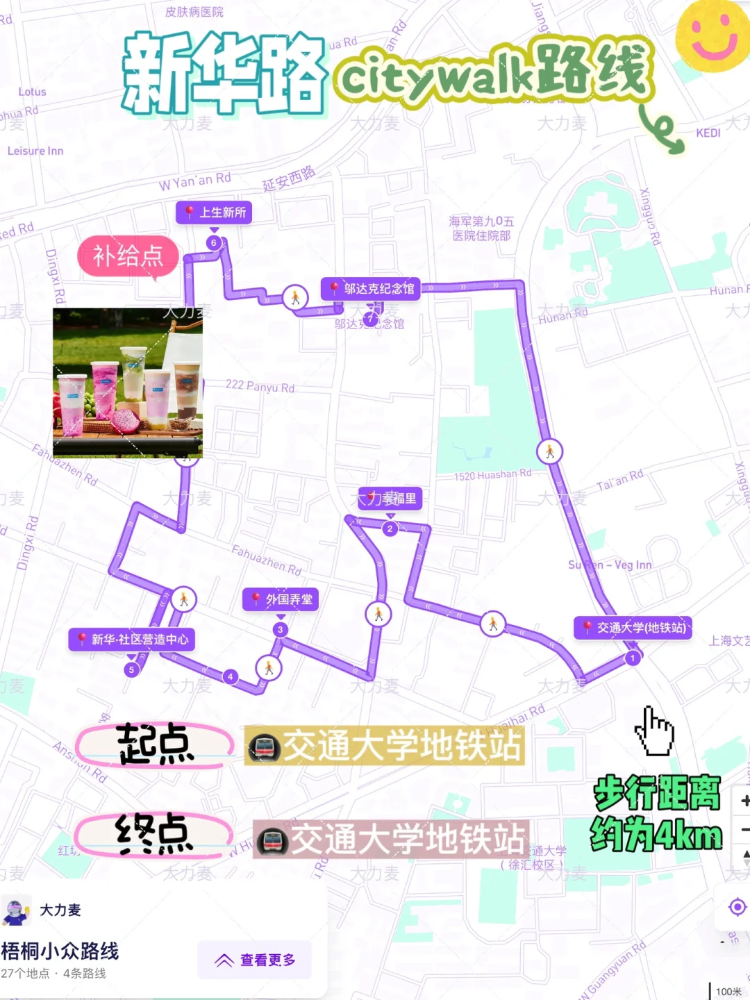 citywalk 路线:🚇交通大学-法华镇路-新华路-安西路-番禹路-🚇交通大学