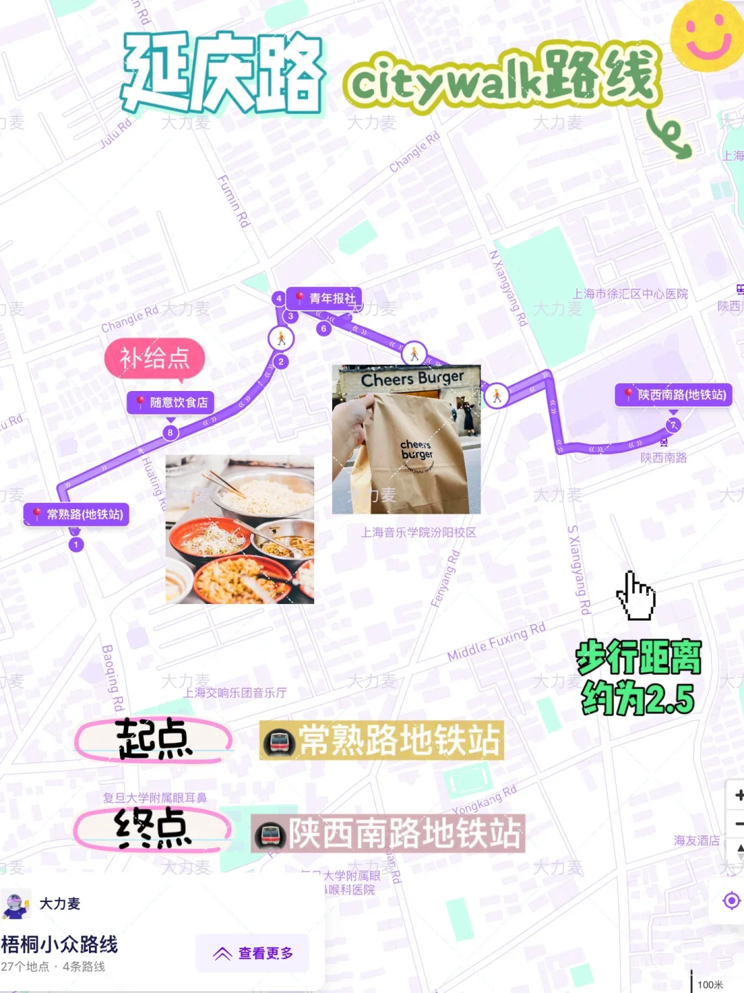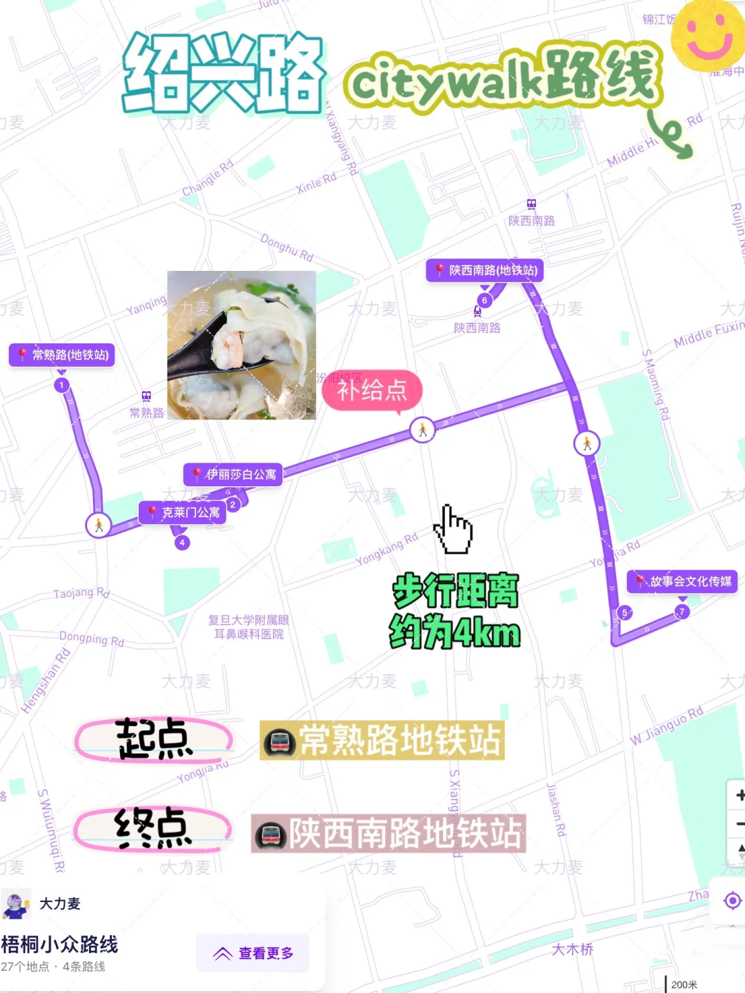 citywalk 路线:🚇常熟路-延庆路-东湖路-淮海中路-🚇陕西南路