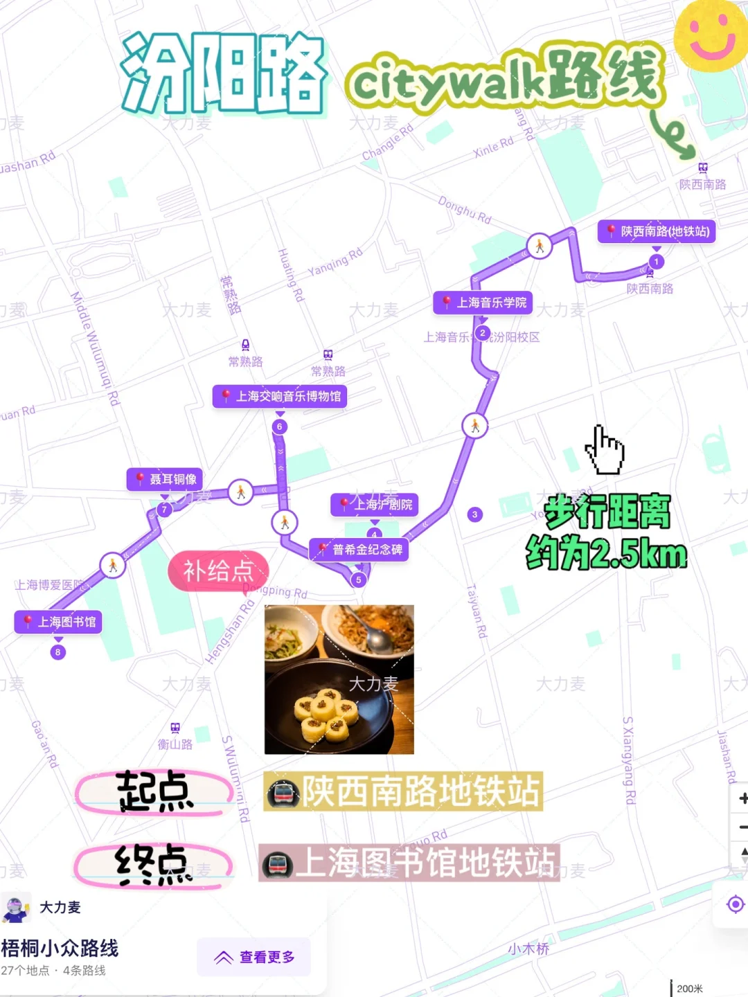 citywalk 路线:🚇陕西南路-淮海中路-汾阳路-桃江路-衡山路-🚇上海图书馆