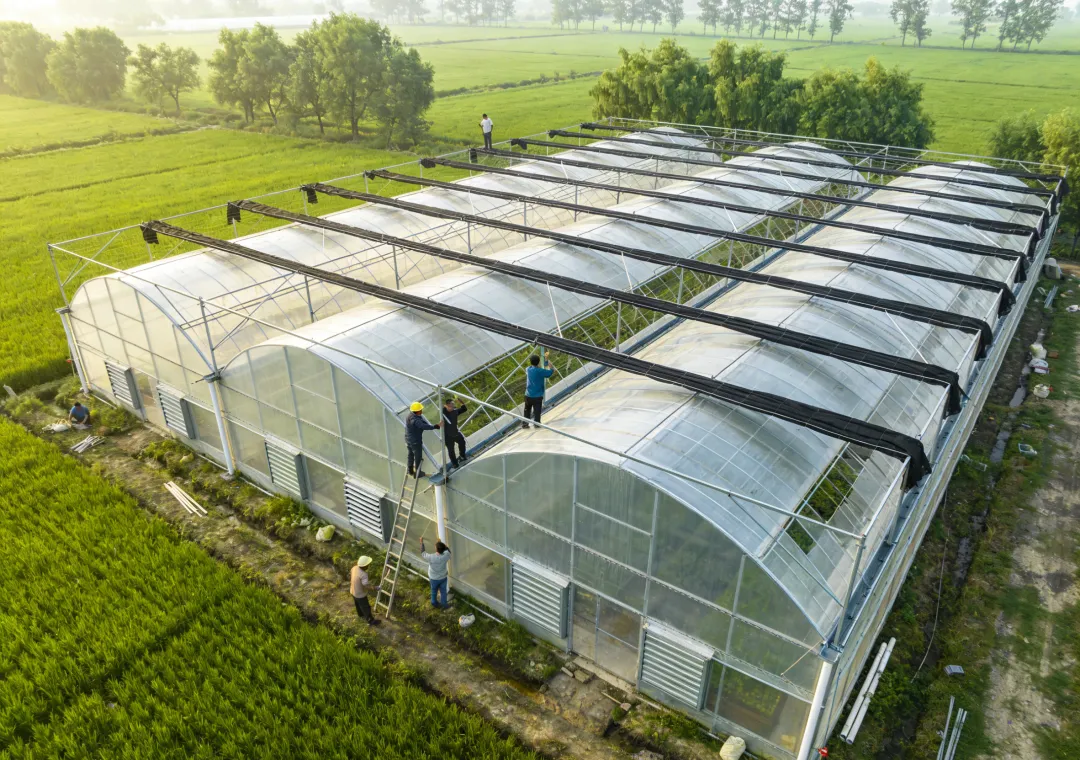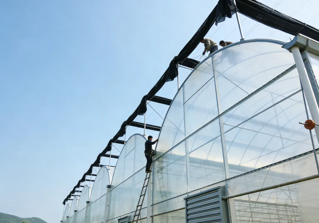 自然通风系统:这是最低成本的降温排湿手段。系统通过电动卷膜器驱动,实现屋顶及侧墙的连续开窗。顶部卷膜开窗通常设置于天沟两侧,开窗宽度可达1.2米以上,利用“烟囱效应”将积聚于顶部的热空气抽出。侧墙卷膜高度通常设计为1.5米至1.7米,形成对流通道。