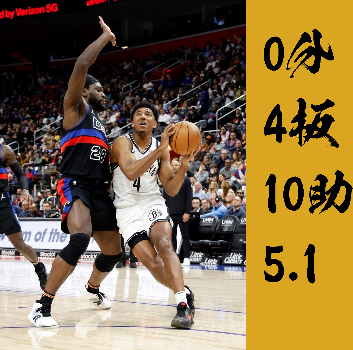 4个篮板,其中进攻篮板2个,防守篮板2个,比赛季整体水平的4.00%高出差值是3.0个百分点。
