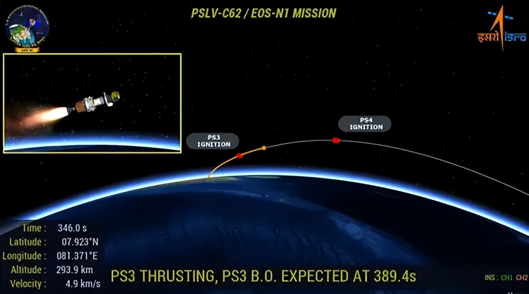 据ISRO官方通报,本次发射的PSLV-C62火箭采用DL构型,总高44.4米,发射质量260吨,是该系列火箭的第64次飞行任务。火箭搭载的主载荷为印度国防研究与发展组织(DRDO)研制的EOS-N1地球观测卫星(又名“Anvesha”),这颗具备高光谱成像能力的战略卫星,原计划部署于512公里高度的太阳同步轨道,可从500公里外识别军事伪装目标,被视为印度天基监视系统的重要组成部分。此外,火箭还携带了15颗伴星,其中包括西班牙初创公司研发的KID再入技术演示舱,后者计划完成再入大气层技术验证。