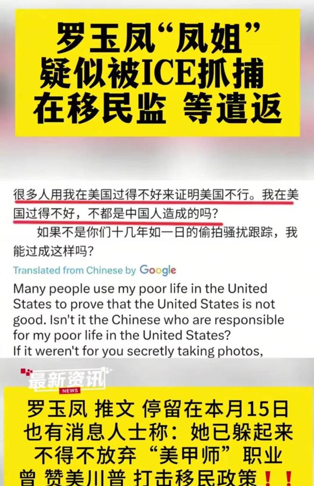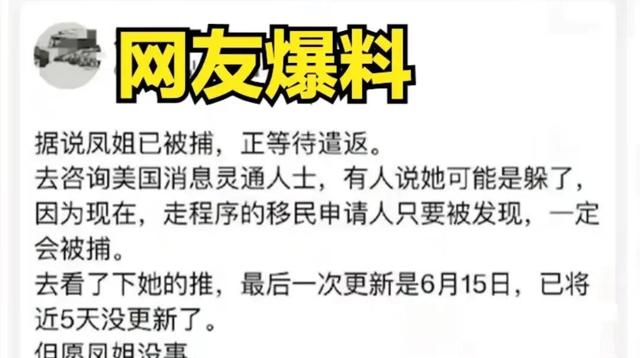 有消息称,凤姐或是因申请庇护遭拒,进而面临驱逐,有说她已提前得知消息躲藏,也有说法称凤姐已经被捕等待遣返,但凤姐的社交账号已经于6月15日起停更,也暂无官方平台证实此事,可大家都没想到凤姐十几年的赴美生涯竟以这样一种方式结束。
