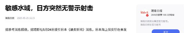湖南日报:2025-05-25《敏感水域,日方突然无警示射击》