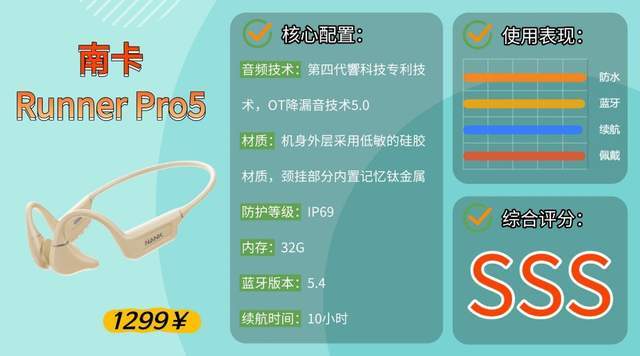 总结:南 卡Runner Pro5是一款全能旗舰级骨传导耳机,在音质、漏音控制、佩戴体验、防水性能和续航上均达到行业顶尖水平,适配游泳、登山、长跑、通勤等全场景,凭借硬核的配置和出色的使用体验,成为高端运动爱好者的不二之选。