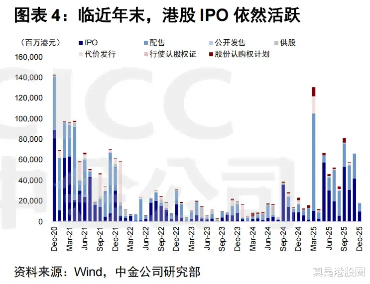 根据中金统计,港股IPO依然活跃,且不少大型IPO解禁期临近。截至11月底,2025年港股IPO累计募资约2600亿港币,位居全球交易所首位。