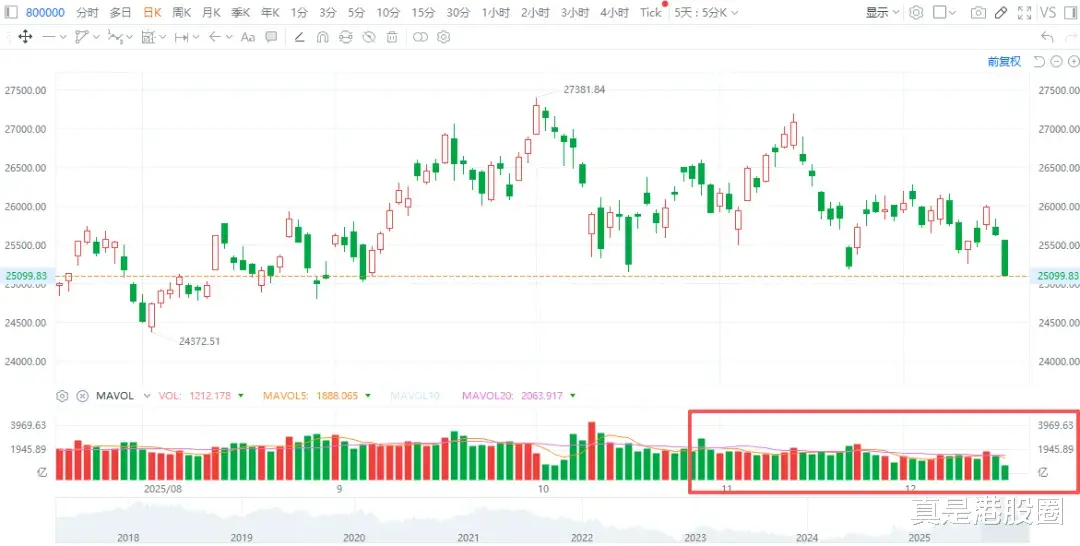 2.市场流动性的变化,最直观的感受是从恒指的交易量来看,从11月开始港股成交量不断缩小。