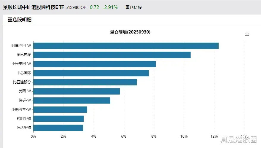而参与科技主线,不知道怎么买的话,可以通过ETF的方式来配置,例如,港股科技50 ETF(513980)是不错的关注标的,跟踪的指数中证港股通科技指数权重股的选择集中,回报更佳,截至12.12,今年的回报也有29%,显著跑赢恒生科技指数的20%。