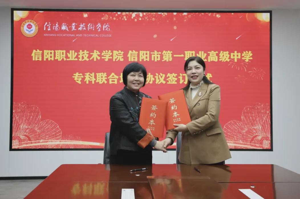 为深化教育协同、夯实人才培养根基,3月26日上午,信阳市第一职业高级中学与信阳职业技术学院举行专科贯通培养协议签订仪式。两所职业院校连续三年的协同合作,既彰显了信阳职业技术学院对信阳市第一职业高级中学办学资质、育人成效与人才培养质量的充分认可,也是紧跟国家职业教育高质量发展步伐、严格落实河南省教育厅贯通人才培养改革要求的务实之举。
