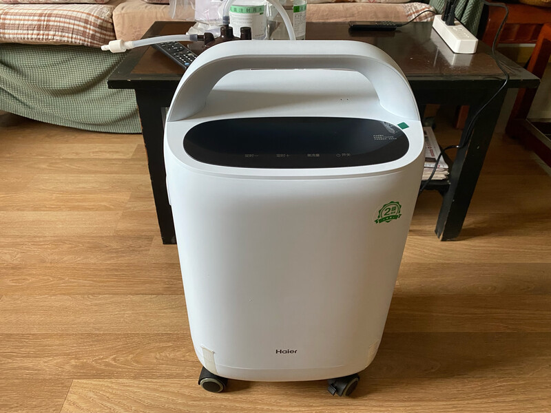 4. 这个海尔制氧机按下开关几秒就出氧,触屏操作界面老人一开始不习惯但用几次就会了,中规中矩。采用PSA制氧技术,配合多层过滤系统滤杂质,还有氧浓度低时的报警功能,不过报警声音有点小。早上刚起床用,因为空气刚流通,氧浓度会降到比设定值低一点,不稳定。