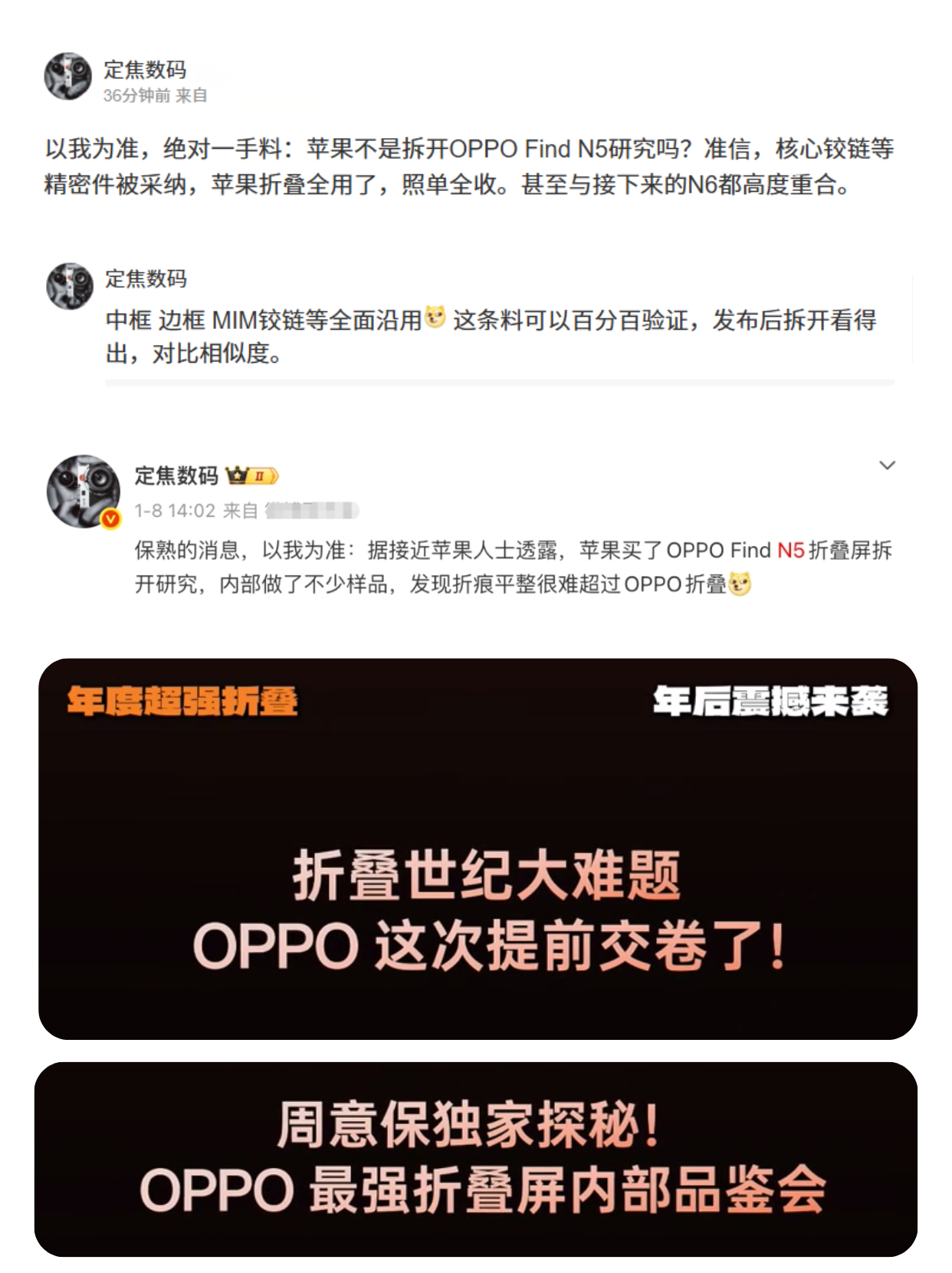 不过比较尴尬的是苹果折叠还没发布,就被爆出铰链技术借鉴OPPO,博主定焦数码称苹果折叠和Find N6技术路线高度重合。