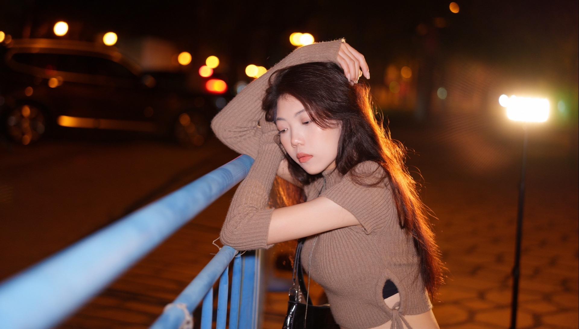 夜景如何拍出氛围感?你想知道的都在这里。相机:A7M4 镜头:永诺501.8 补光:慢门RGB补光灯 快门:1/125 光圈:F1.8 ISO:(800—1250)范围 白平衡:3700k 打光技巧❗️:夜景拍摄一定要注意补光,所以这次我准备了两盏补光灯,一盏方块口袋灯作为主灯给模特面部补光(优点,长方形的口袋灯光源面积大,散发出来的光线覆盖范围广,更同时强化了眼神光(色温3500K);另一支灯作为副灯放在侧后方,打亮发丝的同时增加了氛围感(为了体现出金黄色的发丝,色温要暖与主光,可以调到2500k) 注意‼️:拍摄过程不是一成不变的,注意观察周围的环境,善于发现好看的背景,比如观察到好看的车灯,霓虹灯,就想到大光圈虚化后的灿烂多彩的光斑 后期:简单袪瑕疵,磨皮(灯光打到位后期很简单)