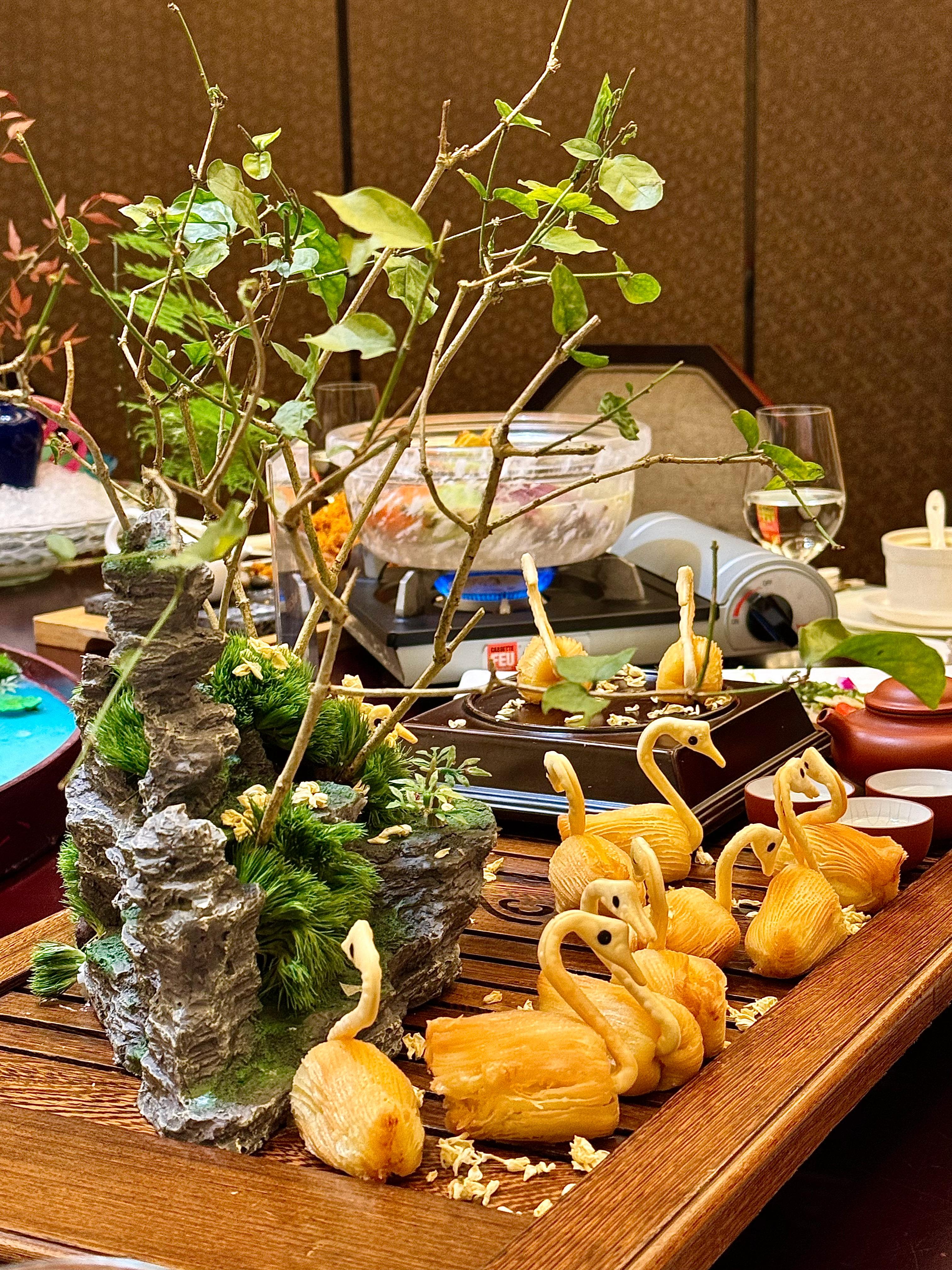 味蕾居然被酒店的中餐厅给俘虏了,餐前先来一碗清淡的鸡汤,凉菜是应季蔬菜春笋!图五是大厨创新的茉莉花天鹅酥,又漂亮又好吃😋还有大家一致好评的图六,新鲜茉莉花融入金汤烩饭,吃的时候还能嚼到香脆的炒米。