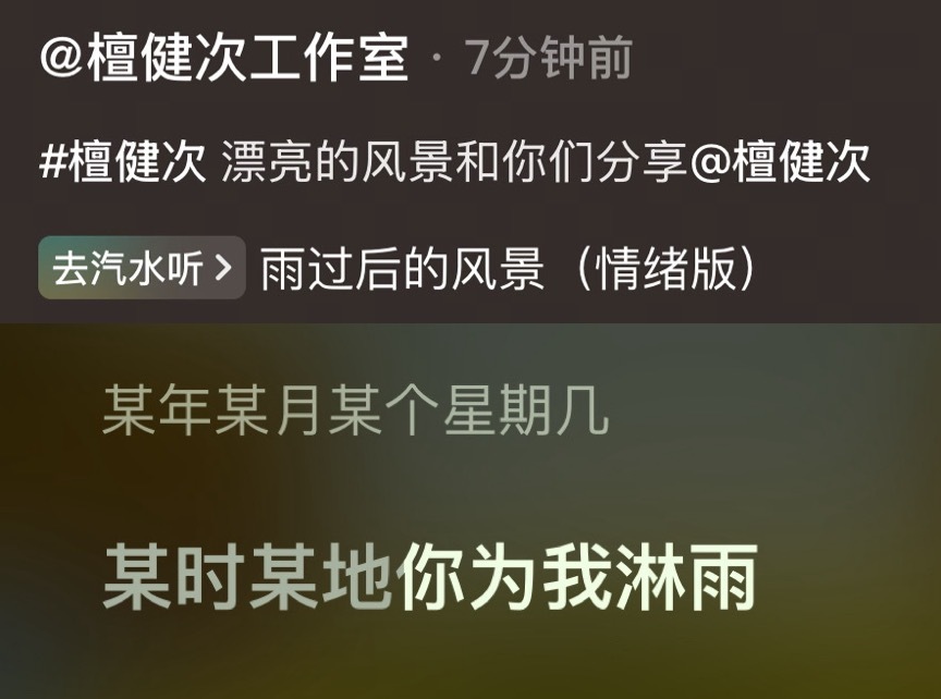 昨天看到檀健次工作室刚发的视频时有一瞬间的恍然,还是那个拍到什么好看的风景就会想和我们一起分享的檀健次啊!