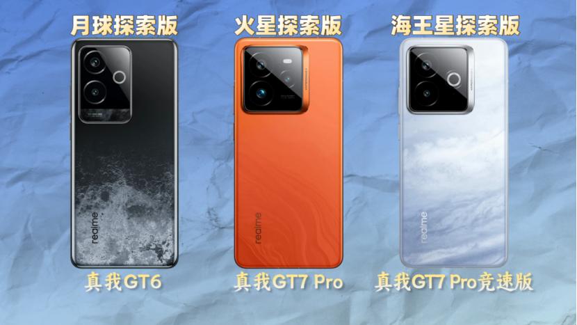 接下来我们再看背面,GT7 Pro有三个配色,继续延续了星球版的玩法,GT6有一个月球探索版(月之暗面),GT7 Pro是火星探索版,后来推出的GT7 Pro竞速版也有,叫海王星探索版,这种模式还是挺有意思的。
