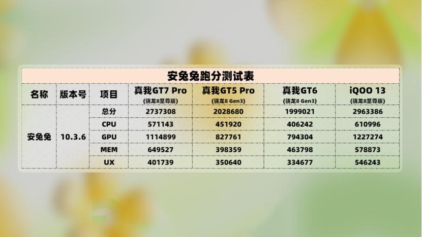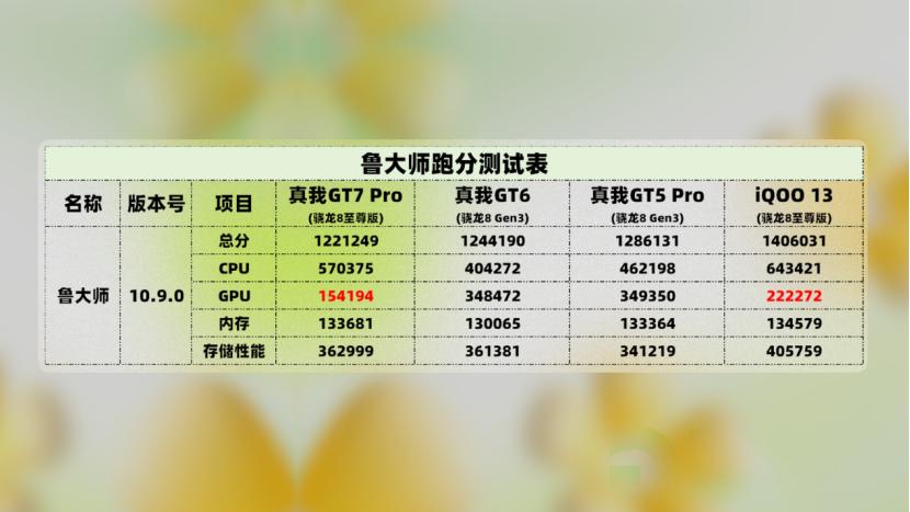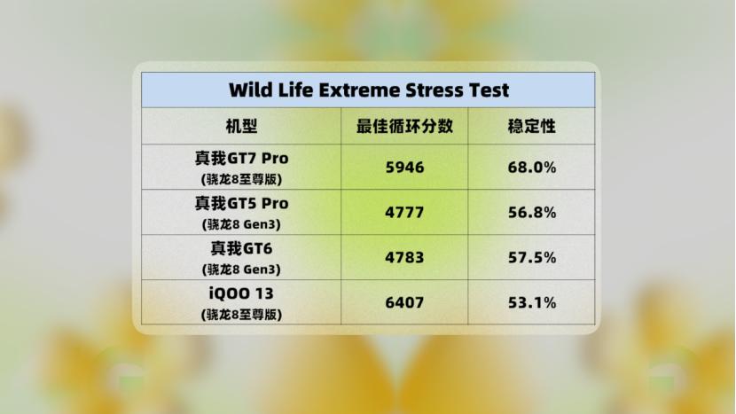 对于同样搭载骁龙8至尊版的iQOO 13,二者的表现接近,但从各项数据来看,GT7 Pro略逊色一点。