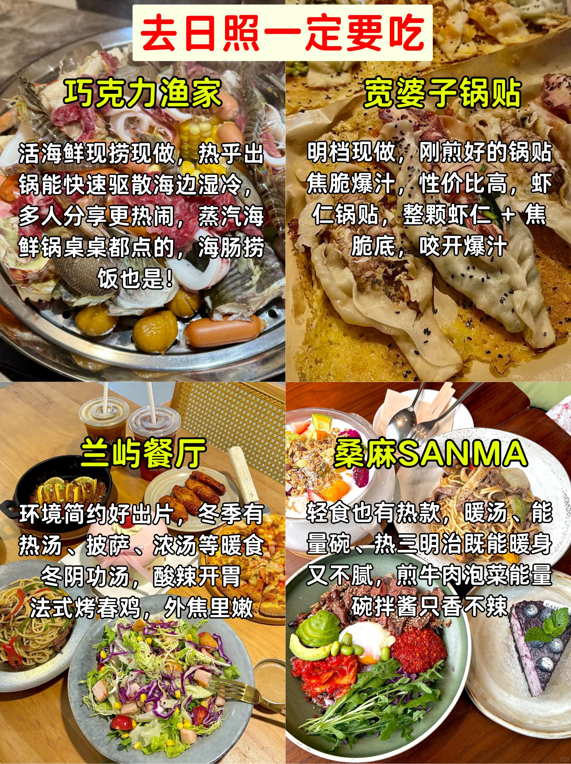 ▫️本地特色餐厅巧克力渔家,可尝试海鲜疙瘩汤蒸汽海鲜锅、海肠捞饭等暖心菜品