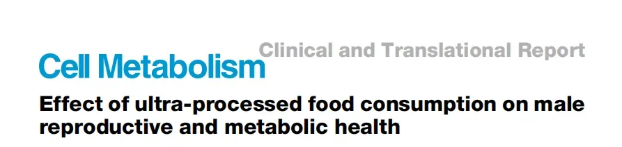 Preston JM, Iversen J, Hufnagel A,et al. Effect of ultra-processed food consumption on male reproductive and metabolic health. Cell Metab. 2025 Aug 22:S1550-4131(25)00360-2.DOI: 10.1016/j.cmet.2025.08.004.