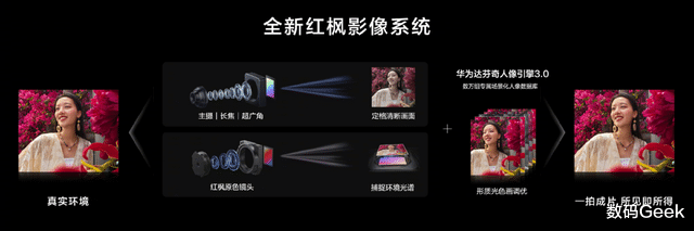 影像系统方面可以说是这次华为nova 14 Ultra的重点升级,它搭载了全焦段的红枫质感人像,在拍人像时不仅能支持多焦段切换,拍摄更灵活,肤色处理也更加自然,配合升级后的达芬奇人像引擎3.0,人物立体感更强。同时,它还配备了自适应双闪光灯模组,能根据拍摄环境自动调整补光,夜拍更稳定,亮度更自然。
