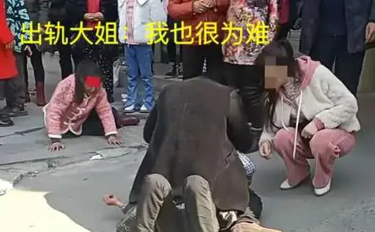 四川内江,一位中年妇女因为与网络情人的约会,被原配丈夫在街头痛打