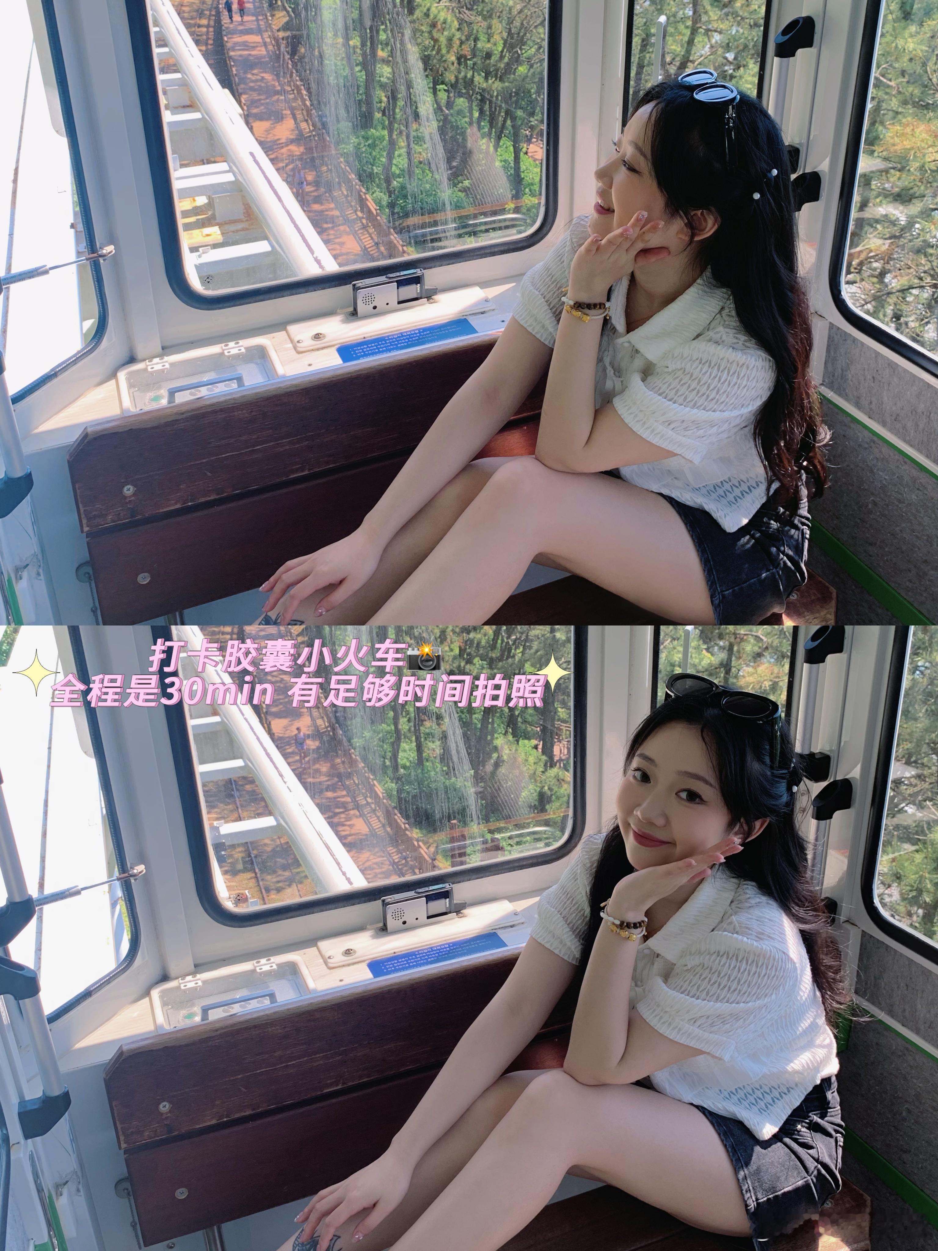 ✔️胶囊小火车来了,单程都有30分钟,和朋友慢悠悠的看窗边海景拍拍照,最多可以坐四个人,推荐落日去,光线变化的天空更美!下车一直往前走50米左右就是一个下坡到海边的街景,好拍好拍超好拍,特别出片!