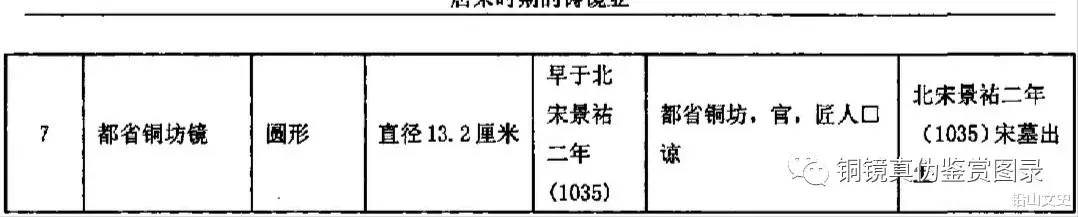 北宋前期墓葬中亦有大量都省铜坊镜出土(表1-2-2),这类都省铜坊镜可能是前代遗物,亦可能是北宋初年所仿南唐的都省铜坊镜。都省铜坊镜虽然为五代时期的官铸铜镜,但这种素面、直接铸以作坊和工匠名的形制,开创了宋代建州镜、湖州镜等私家作坊镜的先河。