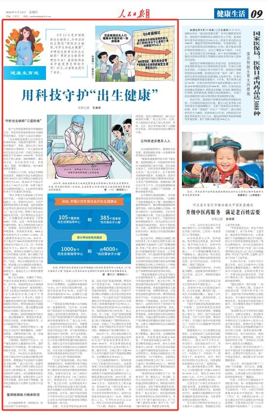 “绝大多数出生缺陷缺乏有效的治疗手段,一些重大出生缺陷往往伴随患儿一生,常需终生治疗,不仅严重影响患者的生命质量,也给家庭和社会带来沉重的经济负担和精神压力。”赵立见介绍,即使小部分出生缺陷有药可医,治疗费用往往也是天价。以脊髓性肌肉萎缩症(简称SMA)为例,这是一种常染色体隐性遗传疾病,患儿早期常表现为肌无力、肌萎缩,进而发展到吞咽无力、呼吸困难,致残致死率高。SMA总体发病率约为1/10000—1/6000,但人群携带率高达约1/50。2019年,首个能治疗SMA的药物诺西那生钠注射液在中国正式上市,但一针价格高达70万元;2021年,经过八轮医保谈判,诺西那生钠最终以每针3.3万元的价格进入医保,极大减轻了家庭经济负担,但这类患儿仍需终身用药。“因此,将出生缺陷防控关口前移,探索建立出生缺陷防治新模式,大力推广适宜先进技术,是减少出生缺陷发生、提高出生人口素质的重要保障。”他说。