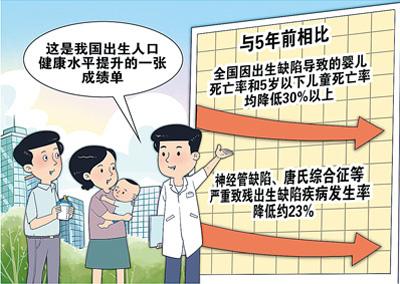 数据显示,我国出生缺陷防控网络不断健全。截至目前,全国婚前检查机构、孕前检查机构超过3000家,产前筛查机构超过4000家,产前诊断机构超过500家,新生儿疾病筛查中心259家,所有区县均设置新生儿遗传代谢病筛查采血机构……经过持续努力,我国出生缺陷防治工作成效明显。与5年前相比,全国因出生缺陷导致的婴儿死亡率、5岁以下儿童死亡率均降低30%以上,神经管缺陷、唐氏综合征等严重致残的出生缺陷疾病发生率降低23%。