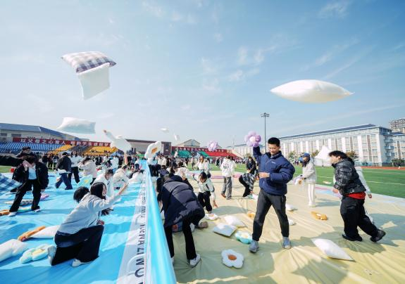 学生们通过绘制“自我画像小狗”、转动“闪光点转盘”探索优势;借助“祛除标签”“暖心漂流瓶”学习悦纳自我与人际联结;在挑战任务中激发韧性。象征积极品质的印章奖励机制,持续引导学生积累积极自我认知。压轴环节“百人枕头大战”更让学生在欢声笑语中释放压力,亲身感受积极情绪的力量。游园会以游戏为载体,将积极心理学理念深度融入具身参与,成功帮助学生从“关注问题”转向“培育优势”。