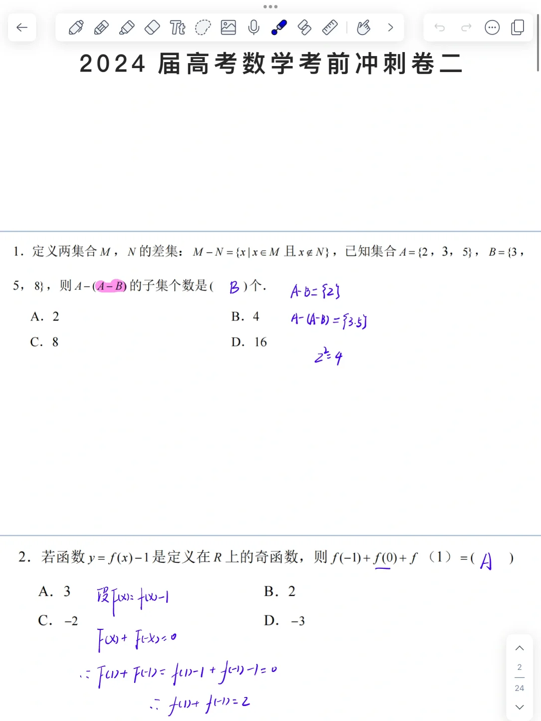 2024高考数学考前冲刺卷二