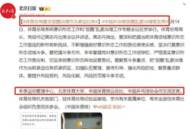 而1月14日,体育总局就召开了专题会议:整治饭圈乱象。