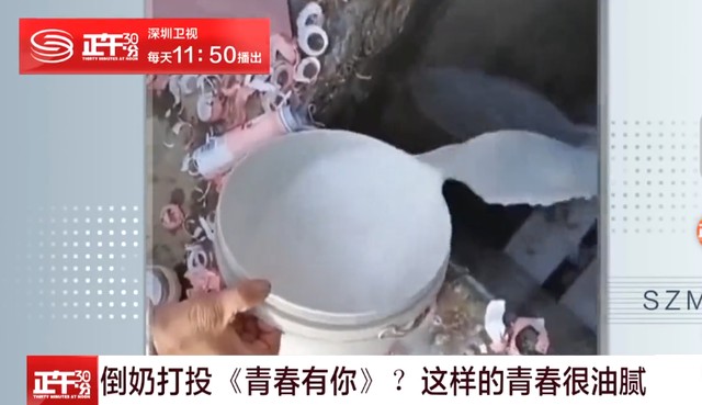 但因为太多了喝不了,便在拧开盖子扫码助力后,将牛奶倒入沟里。
