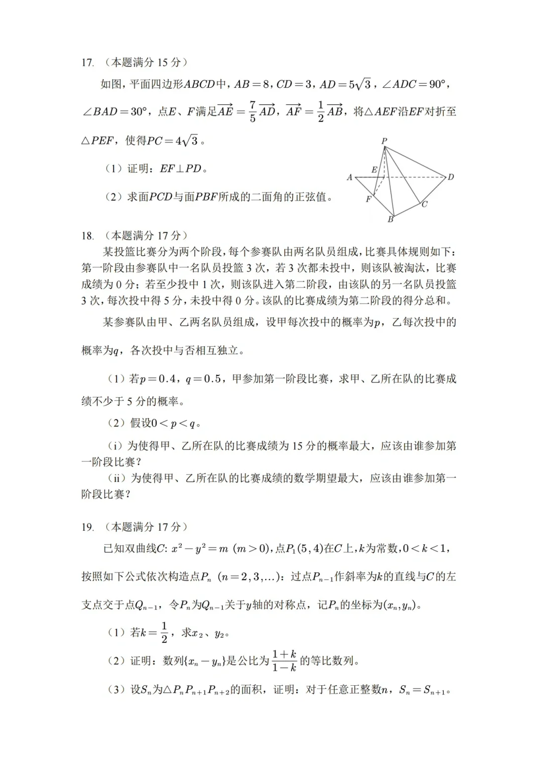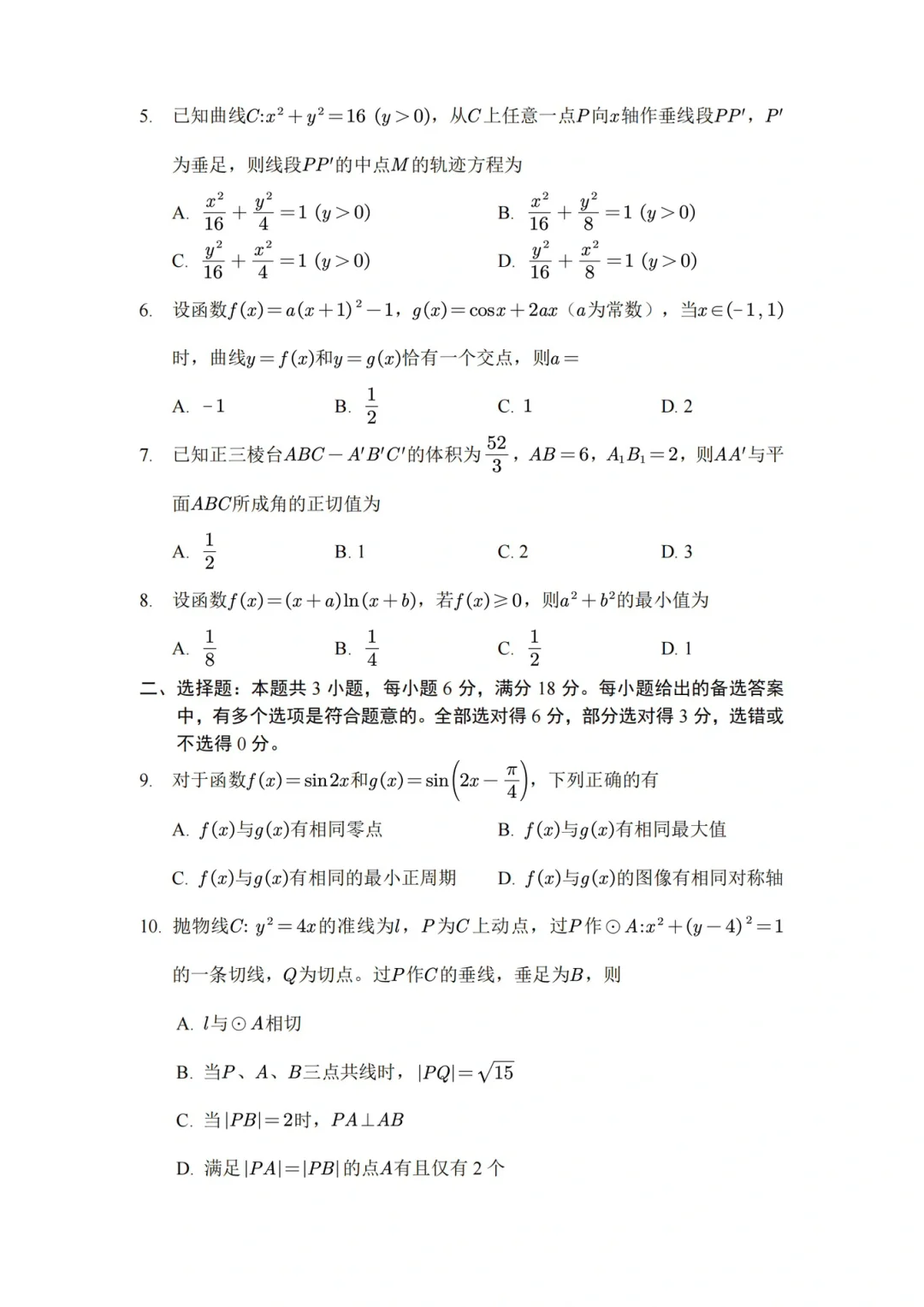 第一,单选题送分送得很干脆,第1 2 3 4 5 6 8题基本都不用动笔,第7题把图画清楚之后,运算量也很小。相对来说,第8题的共零点类型虽然在江浙地区的模拟题里都玩烂了,但2卷地区的学生平时可能很少做到,也许会耗费多一点时间思考。第二,多选题干干净净,两道基础题一道中档题,命题人相当善良了。第三,填空题的T14可能大家都会选择枚举法,很容易就有所疏漏,T13虽然不难,但对于平时三角恒等变形练习不多的学生来讲,很可能不敢下手。第四,解答题的专题顺序应该说在大部分老师的预料之中。前三道大题,分别是解三角形,导数,立体几何,考查角度很传统,难度不大。概率与统计作为次压轴也算意料之中,这道题的思路很简单自然,但是在比较概率和期望大小的过程中需要进行双变量多项式的运算,可能是很多人所不熟悉的。第五,压轴题比较有新意,以双曲线为载体考察数列的相关知识和方法。思路同样很自然,但字母太多,下标上标太多,可能会影响计算心态,再加上第三问考的是大家不太熟练的指数运算,算到一半中途放弃的人应该很多。总的来说,新高考2卷的思维强度不大,但运算可能刚好落在了同学们的痛点上,同样是考140分不太容易,但对于平时稳扎稳打的学生来说,考130分一点问题都没有。