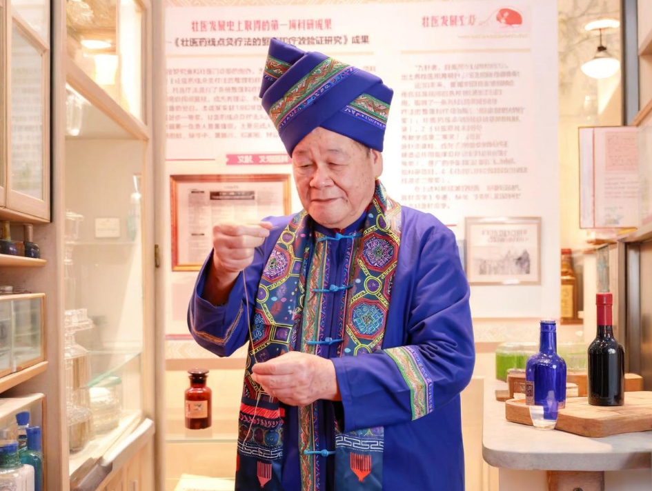 黄瑾明的壮医之路始于上世纪六十年代,那时他在基层医疗实践中,第一次接触到壮族医药学。那些来自民间的智慧,就像是点点星火,点燃了他对壮医的好奇和探索的热情。1976年,在广西中医学院任教时,他亲眼见证了壮医药线点灸疗法的神奇疗效,这让他下定决心,要深入研究这一传统疗法。