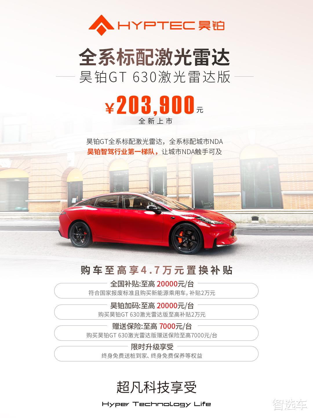 2024年11月12日,昊铂正式推出昊铂GT 630 激光雷达版车型,新车售价20.39万元。借由此次新版本上市,昊铂GT做到全系标配激光雷达,并且新车同样搭载最新昊铂NDA 3.0,具备端到端的高阶智驾能力,其产品竞争力进一步提升,在竞争愈演愈烈的20万级主流纯电轿车市场领跑同级,也进一步夯实昊铂智驾行业第一梯队的硬核实力。