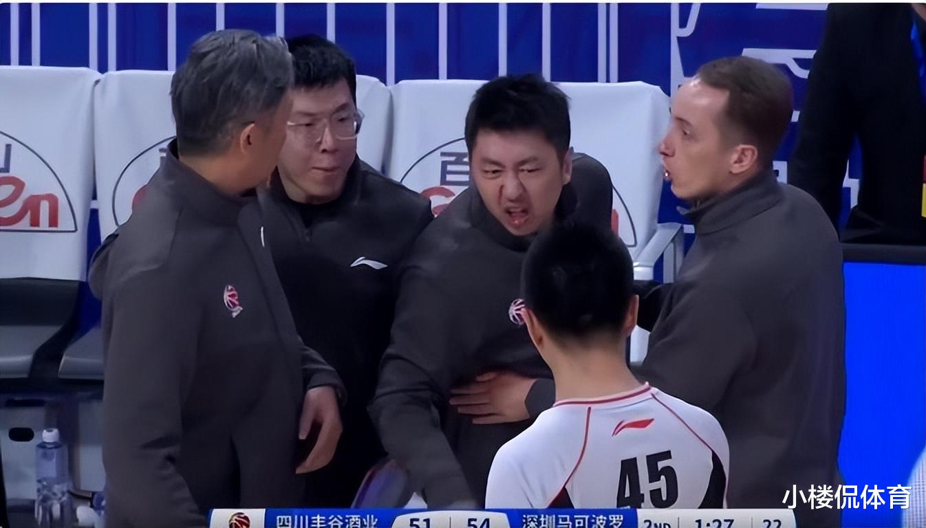 原来,当时,深圳男篮领先四川男篮3分,深圳男篮的教练席突然对场上裁判的一个判罚非常不满意,然后开始狂骂裁判。骂裁判的,不仅仅有郑永刚指导,还有助理教练于树龙。从现场情况看,于树龙的情绪更为激动。