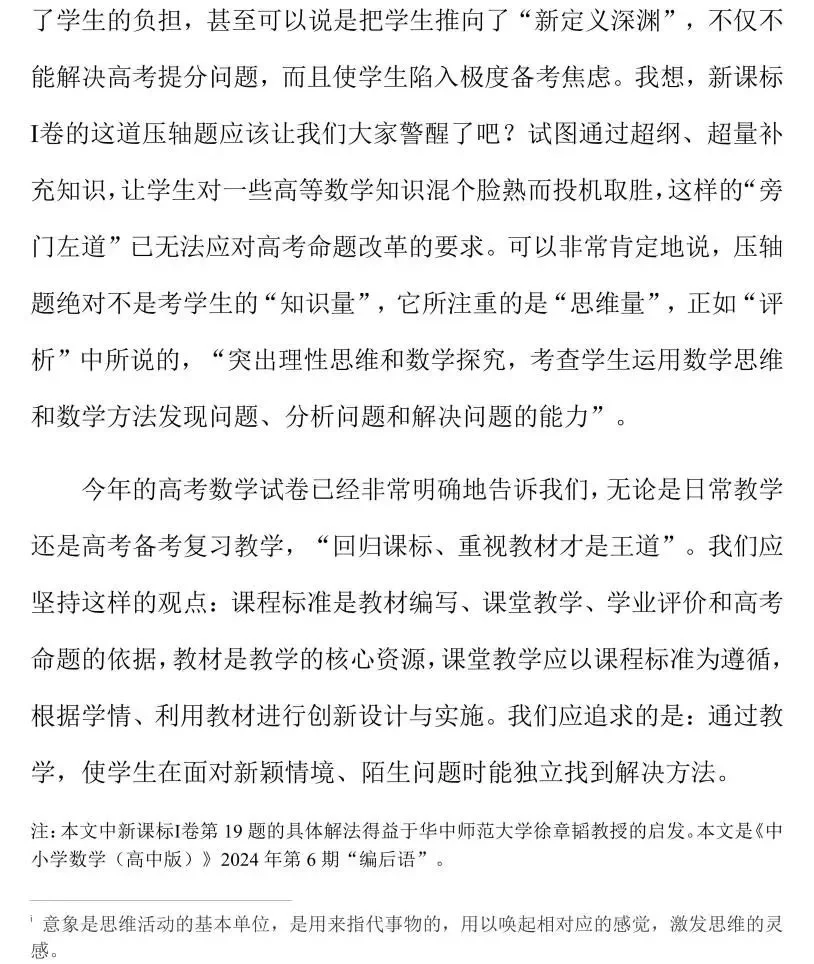 章建跃:2024高考数学的启示:回归课标、重视教材才是王道