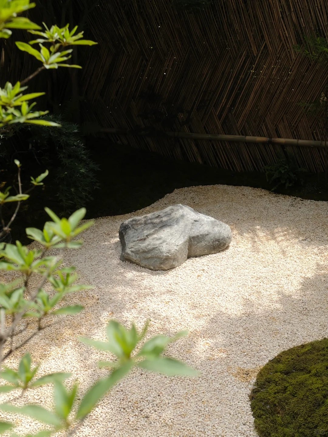 2. 砾石颜色选择浅沙色的,在弱光环境下庭院会显得更亮堂,灰色尤其容易让阴生庭院显得黑鸦鸦一片。