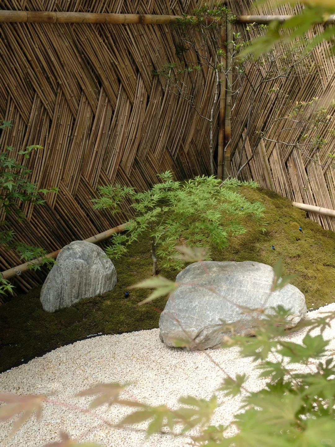 庭院取名“月光枫院”。以9种不同枫树为主景,搭配了山杜鹃、海岛春花等杂木,营造出曲径通幽处的感觉。