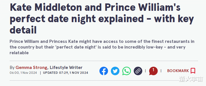 在当地时间11月1日,英媒《每日镜报》报道了凯特王妃与威廉王子的“完美约会之夜”,曝光了其中关键的细节。