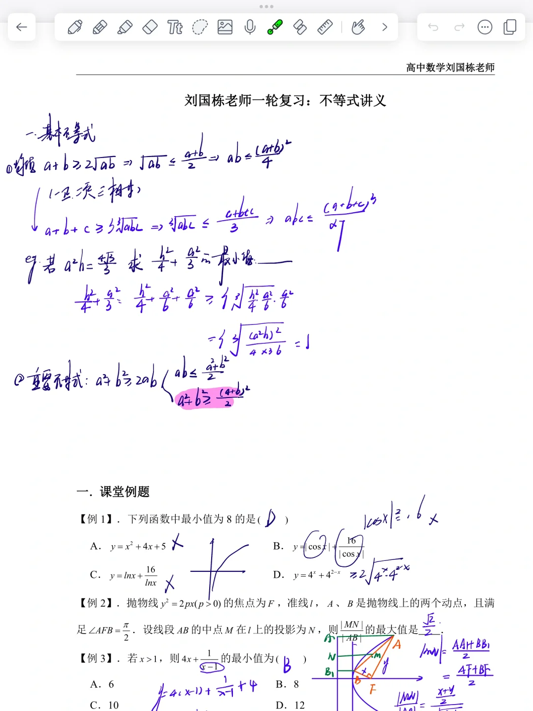 1、[玫瑰R]讲了不等式的直接应用(这里面主要强调均值不等式的三条件)