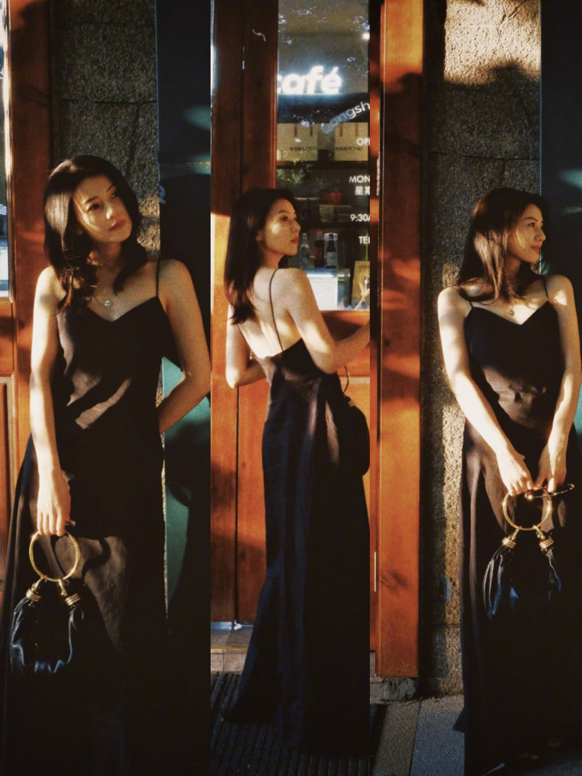 黑色吊带长款露背连衣裙。黑色,作为永恒的经典色彩,不仅显瘦,还能增添一份神秘感。吊带设计透露出恰到好处的性感,而长款露背则增添了一丝不羁的优雅。