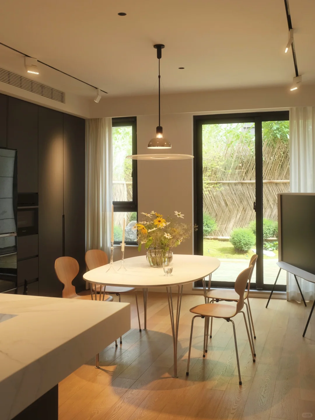 拥有一个开放式餐厨+院子真的太惬意了!一边享受料理快乐,一边欣赏枫院美景,每天都好想邀请朋友来家里做客哈哈~