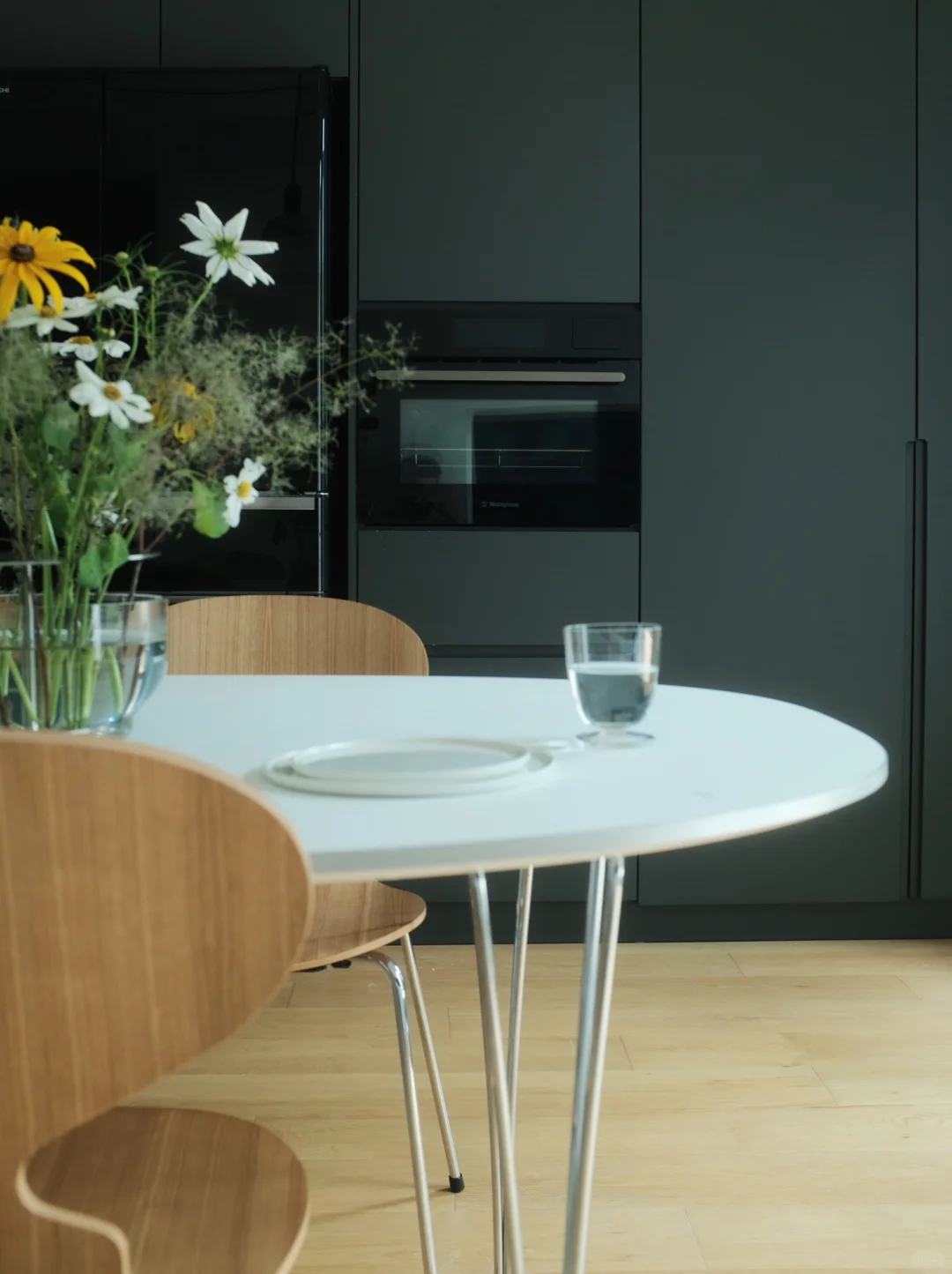 我家的餐厨区域整体是极简灰色系的,这样的风格在夏天看来十分清爽。白色、木色、不锈钢这几个是我十分喜欢运用的元素,材质的碰撞以及颜色的搭配能让自然与现代感平衡的很好。