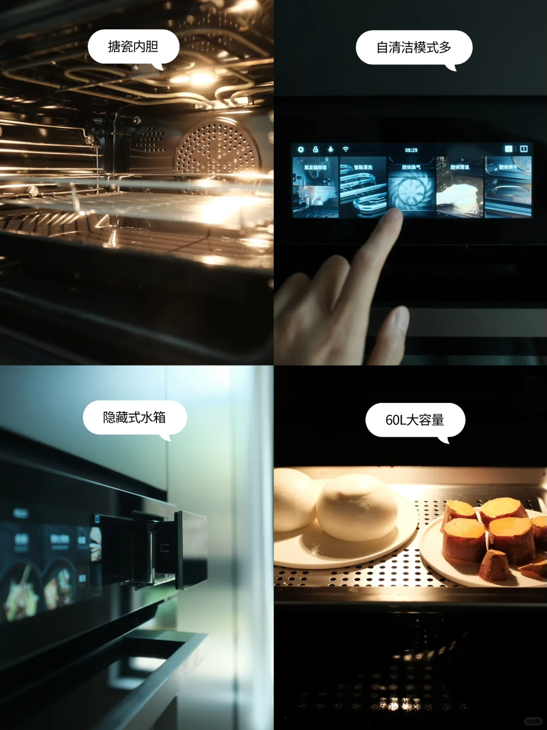 其次,容量很大。60L容量一次可以蒸两个菜。尤其是家里来客人了,有它帮忙料理可以省出很多时间。