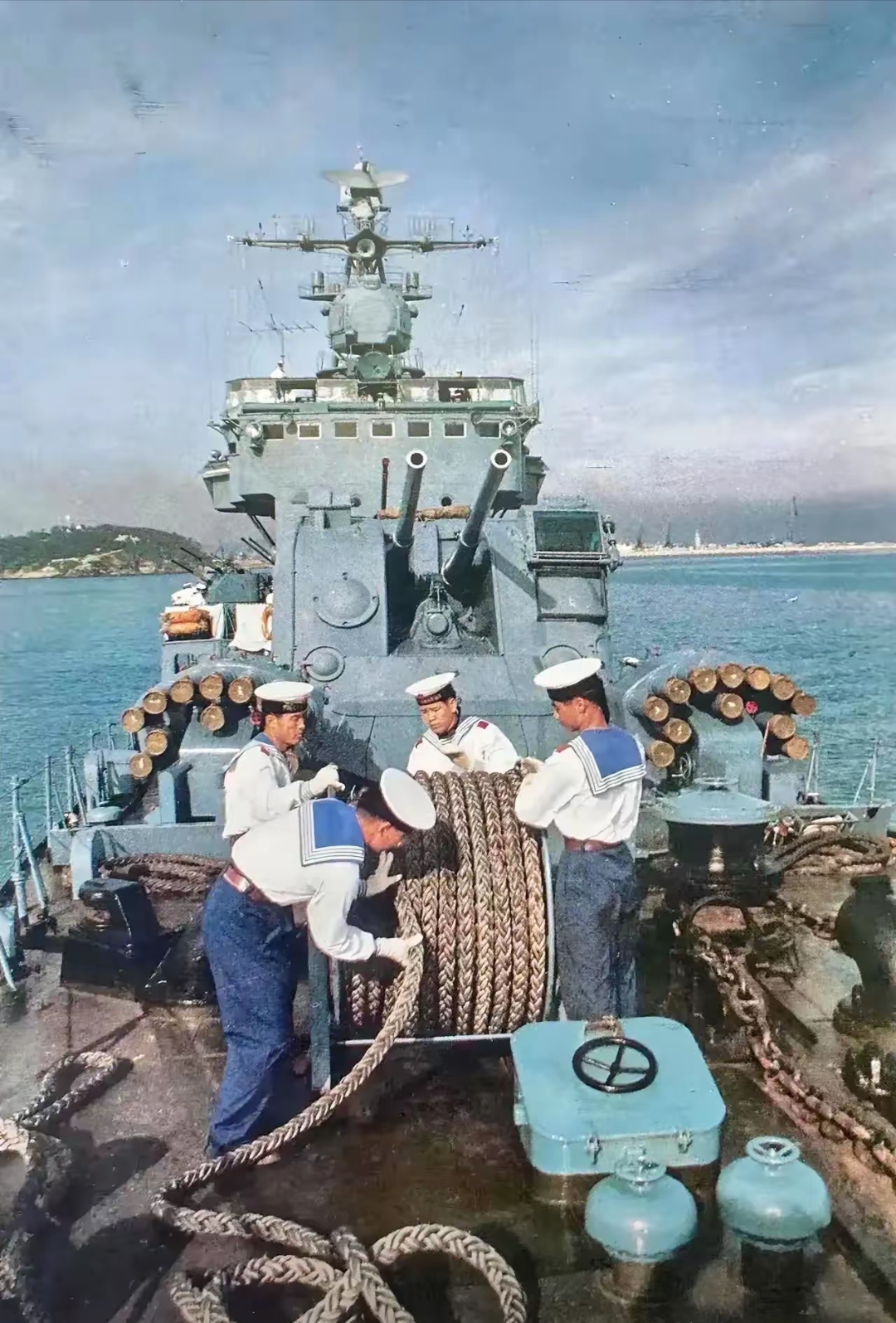 当时图上这艘051型驱逐舰竟然是我军最先进的军舰,可以看出该型舰其实武器装备非常简陋,前甲板除了陈旧的主炮外既看不到防空导弹发射架也没有近防速射炮。