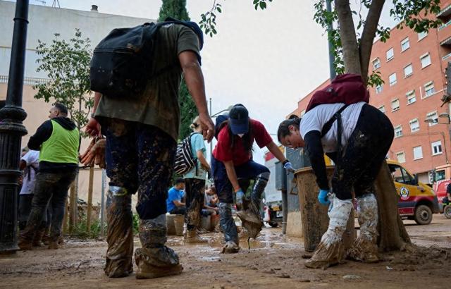11月3日,志愿者在西班牙巴伦西亚拉托雷地区清理淤泥。新华社发(巴勃罗·莫拉诺摄)